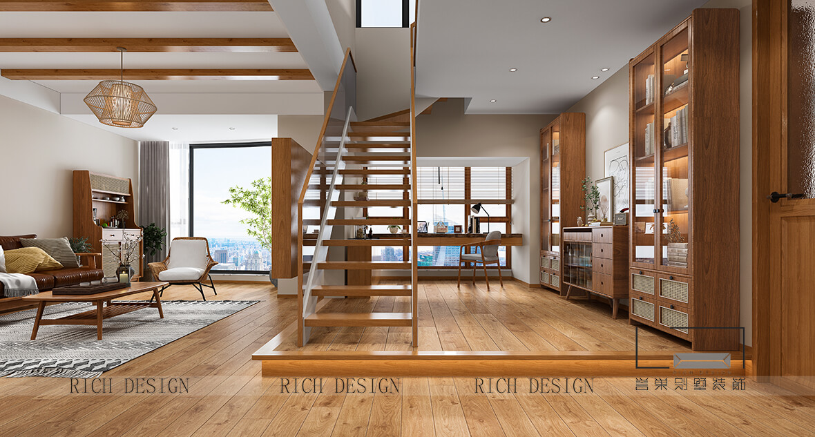 這是一套230m2頂樓復(fù)式,采用大塊面的原木色飾面板包裹住的房子,將客餐廳、臥室與書房,進(jìn)行合理分區(qū),組成一個(gè)個(gè)方形空間,仿佛置身于一個(gè)大木盒中。 客戶與設(shè)計(jì)師一致認(rèn)為,簡(jiǎn)單、隨興與自在,便是生活最美的樣子,而日式原木恰巧能滿足客戶內(nèi)心對(duì)生活的期望。